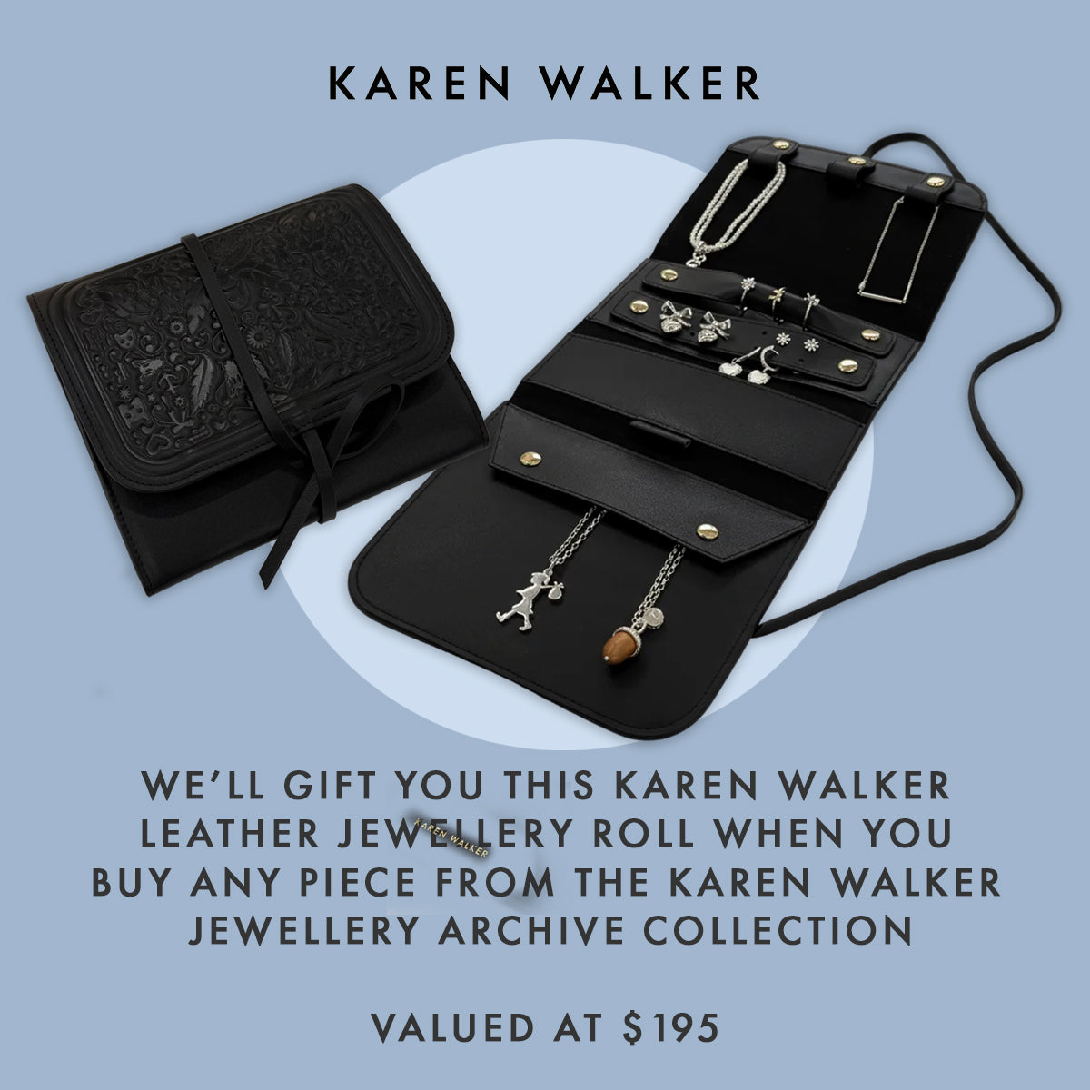 We'll gift you this Karen Walker Leather Jewellery Roll when you buy any piece from the Karen Walker Jewellery Archive Collection.