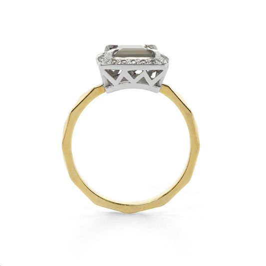 Euphoria Ring - Grey Moonstone & Diamond - 9k Yellow & White Gold
