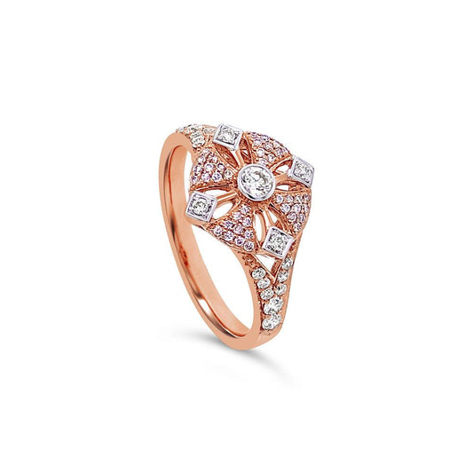 9k Rose Gold White & Pink Diamond Cluster Dress Ring