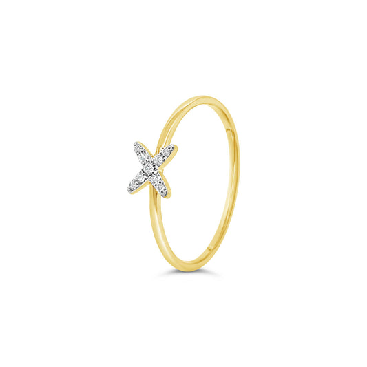 9k Yellow Gold Fine X Diamond Dress Ring