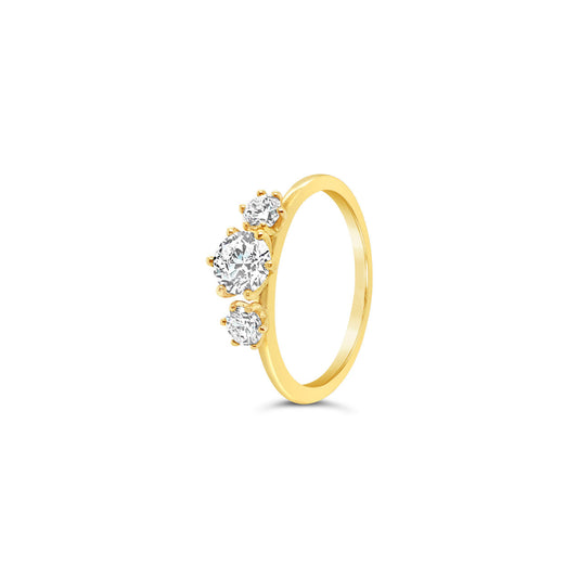 9k Yellow Gold 3 Stone Modern Bridal Diamond Ring