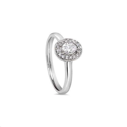 18k White Gold Oval 0.38ct Diamond Halo Engagement Ring