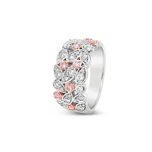 9k White & Rose Gold Multi Stone Pink & White Diamond Cocktail Ring