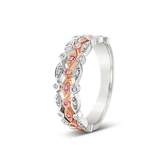 9k White & Rose Gold 3 Band Pink Diamond Dress Ring