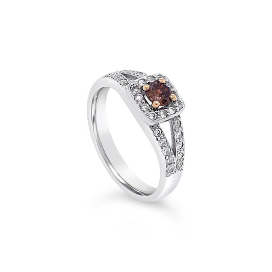 9k White Gold Cognac Diamond Halo Engagement Ring