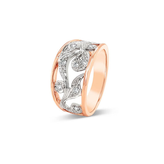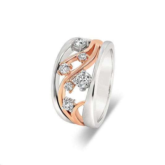 9k Rose & White Gold Multistone Diamond Wave Dress Ring