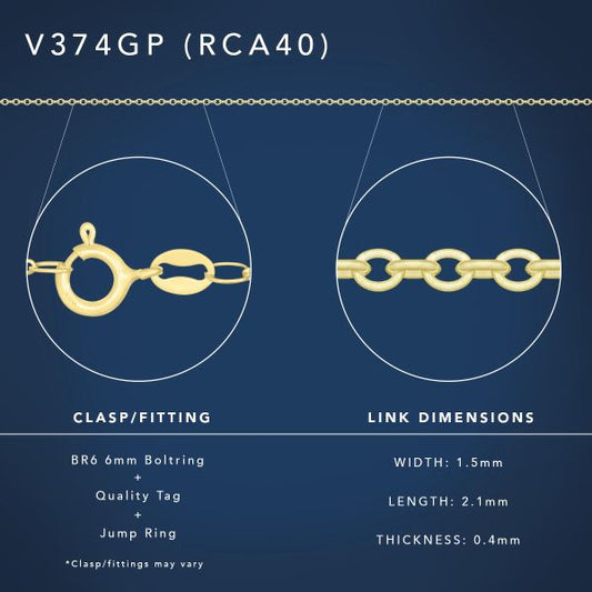 40cm Sterling Silver RCA40 Yellow Gold Plated Round Cable Chain