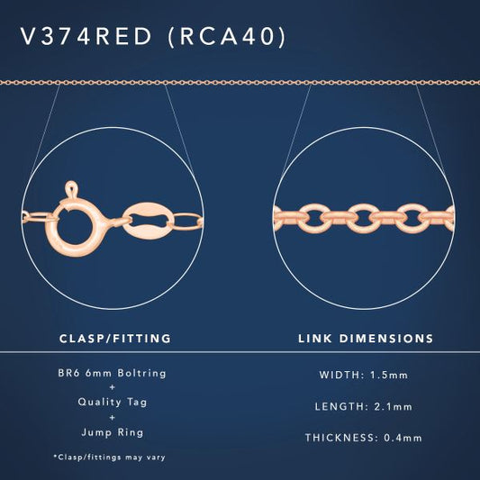 40cm Sterling Silver RCA40 Rose Gold Plated Round Cable Chain