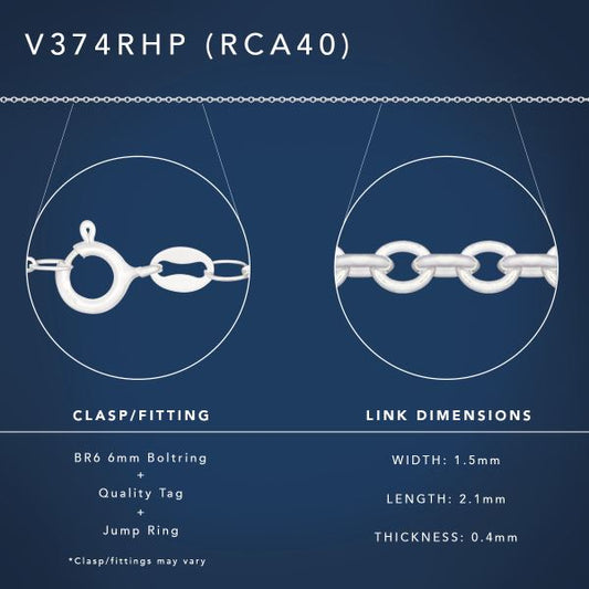 40cm Sterling Silver RCA40 Rhodium Plated Round Cable Chain