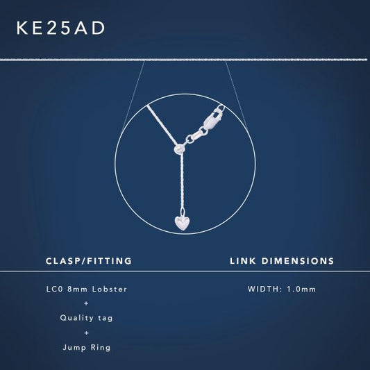 50cm Sterling Silver 1.0mm Wheat Pattern Adjustable Chain