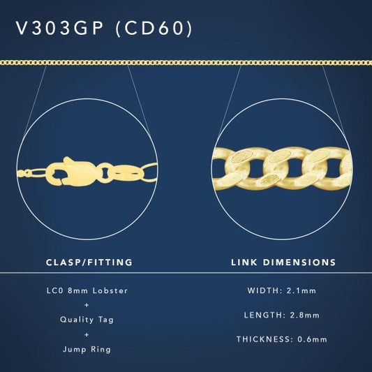 55cm Gold Plated CD60 Diamond Cut Curb Chain