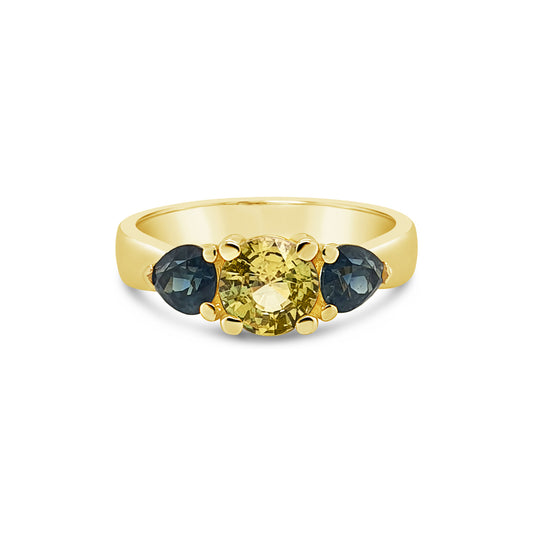 9k Yellow Gold Yellow & Blue Sapphire Ring