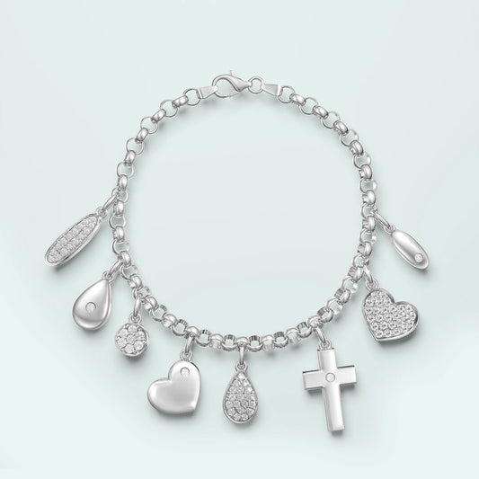 Sterling Silver Love Drop Paw Print Crystal Charm