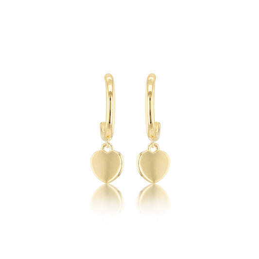 9k Yellow Gold Heart Hoop Drop Earrings