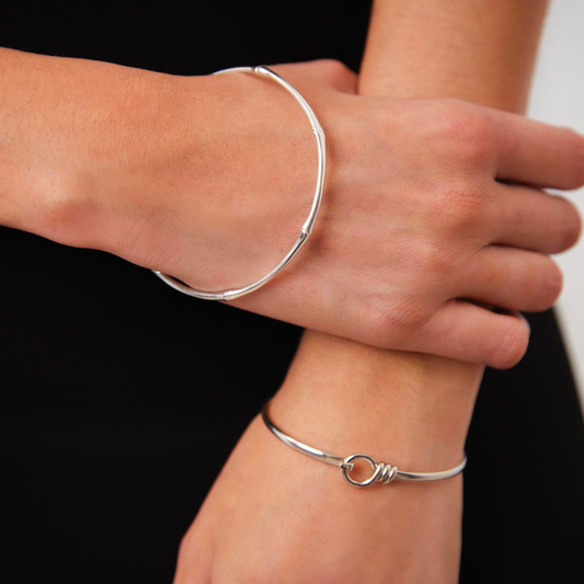 Sterling Silver Medium Weight Double Snaffle Clip Over XX-Large Bangle
