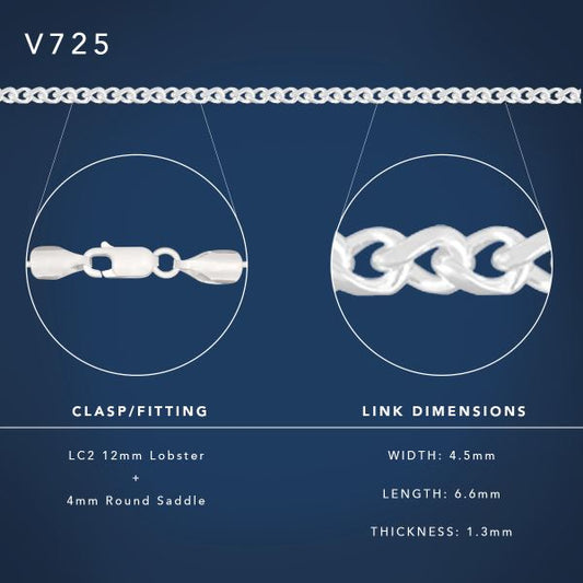 45cm Sterling Silver 4.5mm Twisted Diamond Cut Curb Chain