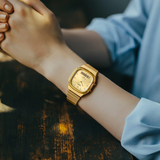 Casio Vintage Square Retro Duo Gold Dial Watch - AQ240EG-9A