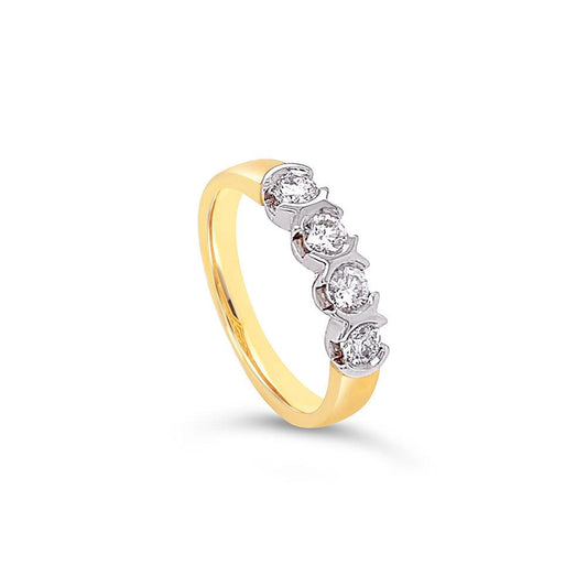 9k Yellow & White Gold 4 Stone Diamond Ring
