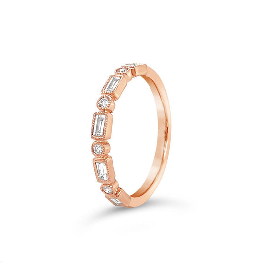 9k Rose Gold Baguette & Round Diamond Band Ring