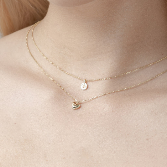 Petite Puffed Heart Necklace (Black Diamond/Silver)