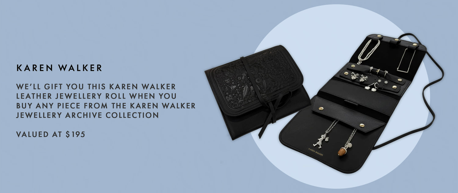 We'll gift you this Karen Walker Leather Jewellery Roll when you buy any piece from the Karen Walker Jewellery Archive Collection.